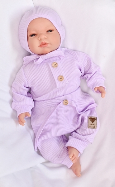 Baby Nellys 3-dílná žebrovaná soupr. Hand Made, body, tepláčky a čepička, lila; 56 (1-2m)
