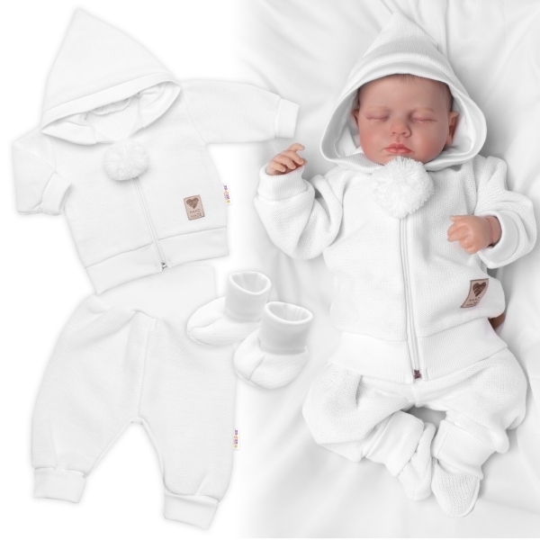 3-dílná souprava Hand made, pletený kabátek, kalhoty a botičky, bílá, vel. 74; 74 (6-9m)