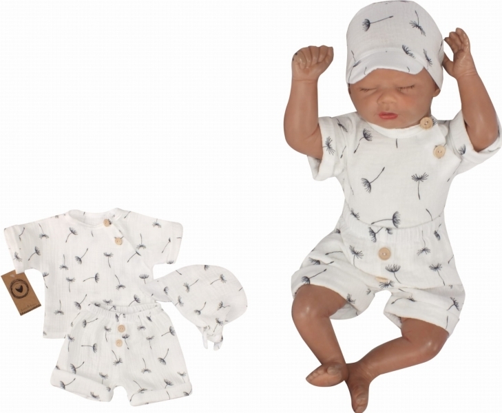 Mušelínové triko, kraťasy + šátek, 3D sada, Pampeliška Z&Z, smetana, vel. 74; 74 (6-9m)