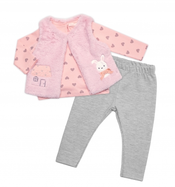 Dětská souprava, Králíček 3D, bavlna, šedá/růžová; 68 (3-6m)