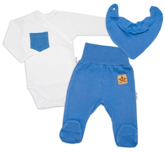 Baby Nellys 3-dílná sada Body dl. rukáv s kapsou, šátek, polodupačky, modrá, bílá; 50 (0-1m)