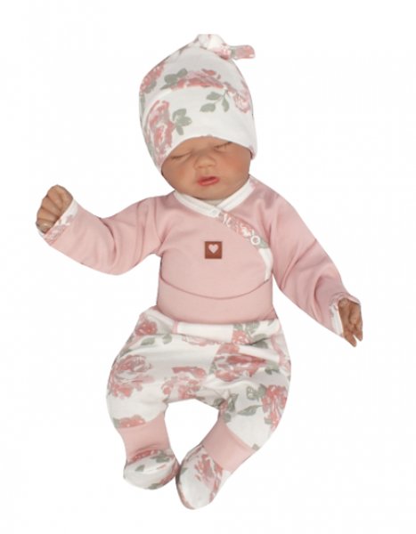 Z&Z 3-dílná soupravička body, polodupačky a čepička Květinka - starorůžová, vel. 50; 50 (0-1m)