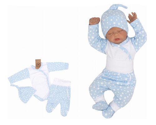 Z&Z 3-dílná soupravička body, polodupačky a čepička Hvězdičky - modrá, vel. 68; 68 (3-6m)