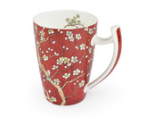 Porcelánový hrnek Tara, červený, dekor květů, 500 ml