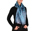 Šátek kašmírské hedvábí světle modrá - květy