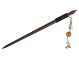 Jehlice do vlasů 18,5 cm, dřevo, zvonek, korálek - Červený