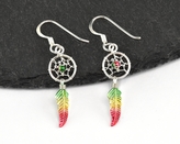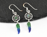 Stříbrné visací náušnice, Lapač snů fialovo-zelený mini