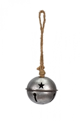 Kovová rolnička stříbrná na jutovém provaze 5x6x16 cm