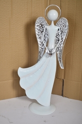 Plechový anděl Mary se stříbrnými křídly 53,5 cm