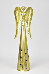 Plechový anděl Hearts svícen, zlatý s patinou 53 cm