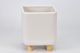 Bílý keramický květináč na nožkách II. jakost 16,6x14,2x14,2 cm