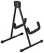 Univerzální stojan typu A pro ukulele je vyroben z pevného kovu pokrytého měkkou pěnovou gumou, která brání poškrábání vašeho nástroje. S výškou 40 cm a rozpětím 28 cm pojme všechna sopránová, koncertní i tenorová ukulele.