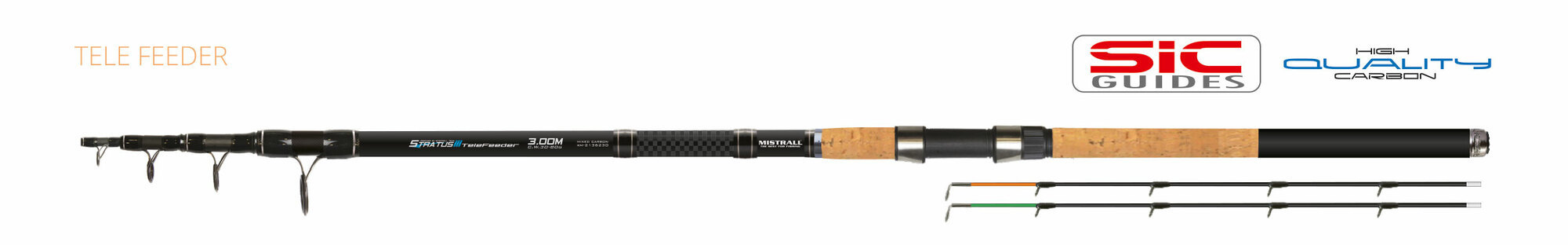 Feederový prut s korkovou rukojetí, je dokonale vyvážený a je osazen SIC očky.
