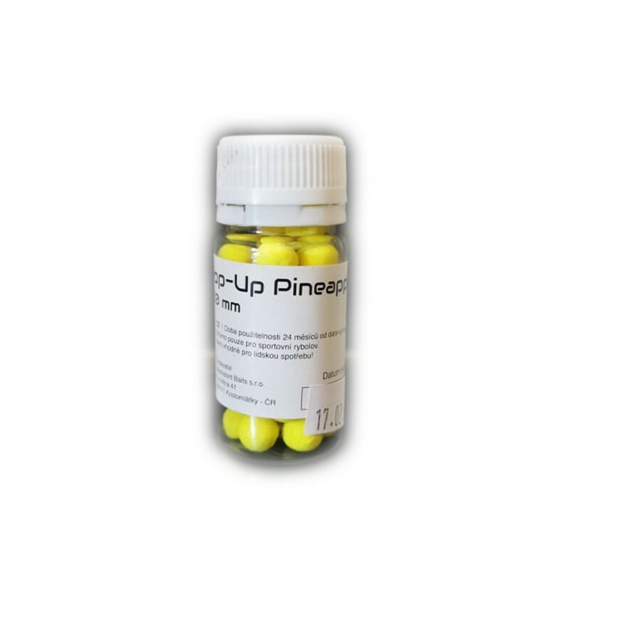 Fluo Pop-Up Boilie Ananas 10mm, plovoucí pop-up boilies lze použít buď jako samostatnou nástrahu, nebo v kombinaci s obalovaným těstem nebo potápivým boilies, což vytváří efekt mírně plovoucí nástrahy nade dnem. Díky tomu je návnada pro ryby atraktivnější.