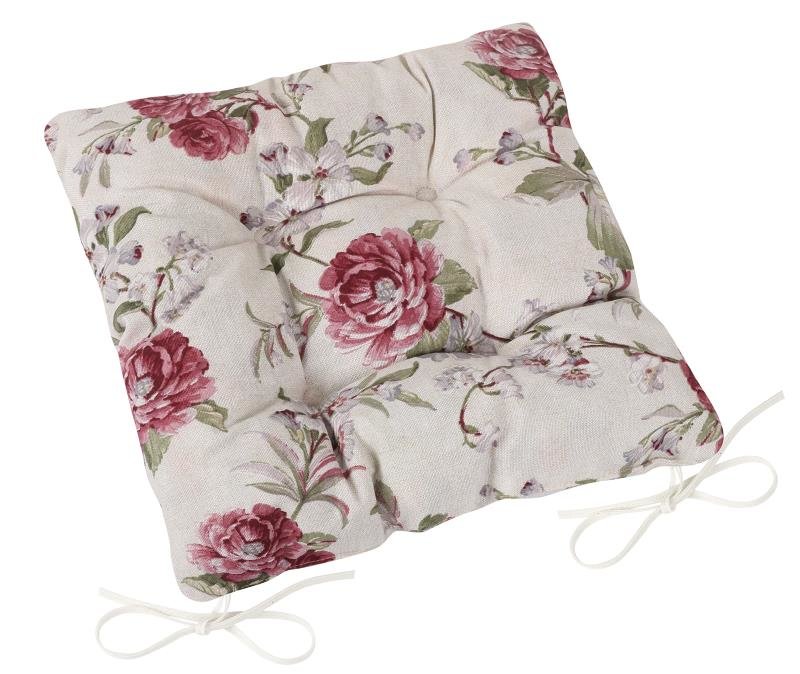 Prošívaný sedák se šňůrkami na zavazování. Materiál je velice kvalitní a odolný vůči prosezení. Krásně se dá kombinovat s polštářkem, chňapkou, zástěrou nebo ubrusem ve stejném dezénu.
