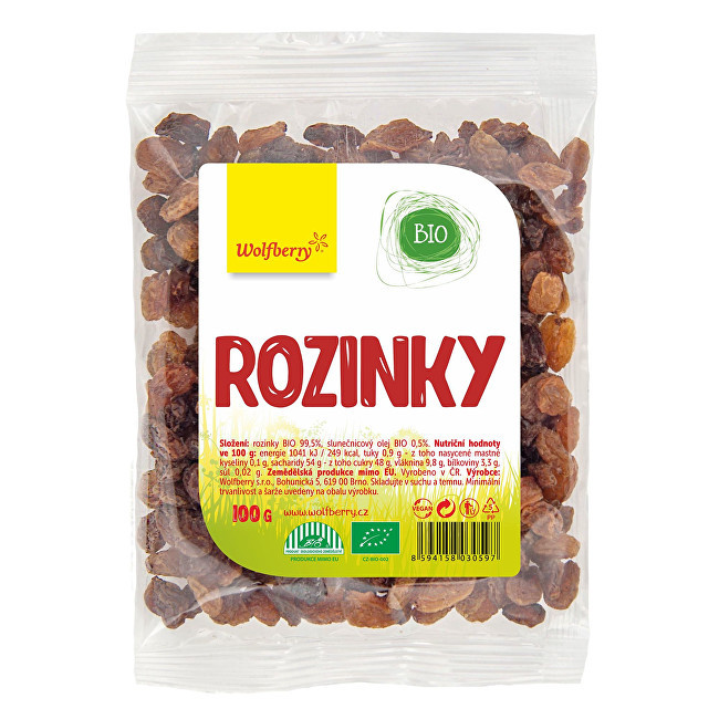 Rozinky Wolfberry BIO 100 g jsou nesířené, pěstované na ekologické farmě. Tento pamlsek s vysokým obsahem energie ocení nejen sportovci.