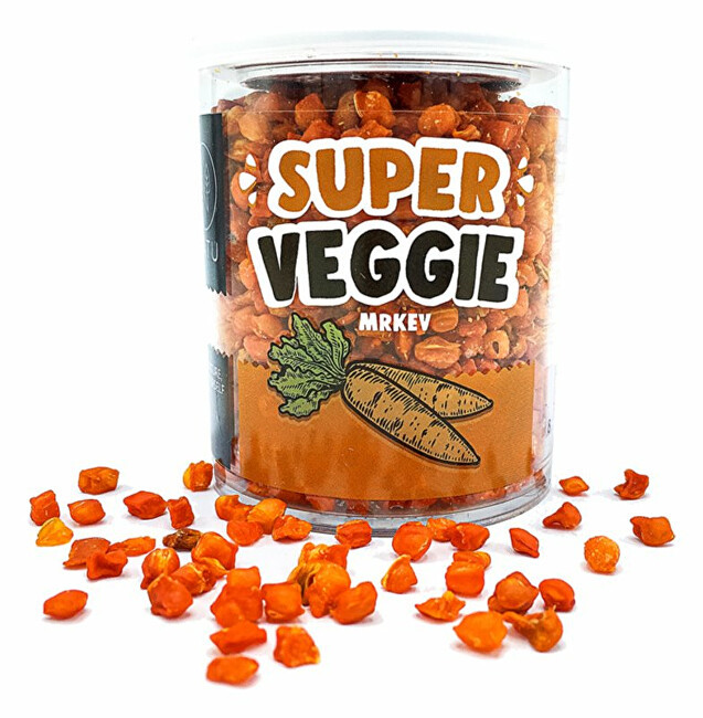 Super Veggie Mrkev to jsou šťavnaté kousky mrkve obohatí každý pokrm vizuálně i nutričně. Tyto křupavé kostičky si zamilují dospělí i děti. Díky unikátní technologii - lyofilizaci - si mrkev uchovává většinu svých původních vlastností jako je barva, výrazná chuť a živiny. Vyniká vysokým obsahem vlákniny.