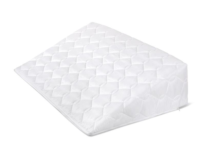 Klínový podhlavník s proševem na zip Skvělá pomůcka do postele při čtení. Podhlavník vám pomůže udržet horní polovinu těla ve zvýšené poloze a usnadní vám lepší dýchání. Povlak je snímatelný se zapínáním na zip. Praní na 60°C v automatické pračce.