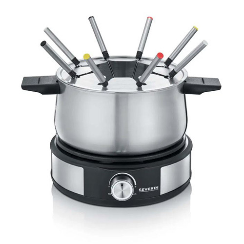Fondue Severin, FO 2471, 2v1, přídavný talíř na palačinky, vyjímatelný hrnec, plynulý termostat, 8 barevných vidliček, 1500 W