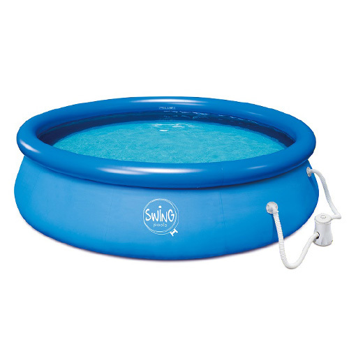 Bazény SWING jsou nejjednodušší ze všech bazénů. Stačí pouze rozložit bazén na rovné ploše, nafouknout obvodový prstenec a napustit bazén vodou, pružné stěny bazénu se samy při napouštění zvednou.S průměrem 244 cm a výškou 76 cm má bazén přibližnou kapacitu 2388 litrů. Stěny jsou navíc absolutně bezpečné díky pružnému materiálu, který je však zároveň velmi odolný proti mechanickému poškození. Kdykoliv bazén snadno vypustíte pomocí zabudovaného výpustního ventilu a rozložíte. Dodáváno s kartušovou filtrací 12V - 1,2 m3.VAROVÁNÍ! NIKDY NENECHÁVEJTE MALÉ DĚTI BEZ DOZORU - NEBEZPEČÍ UTONUTÍ.