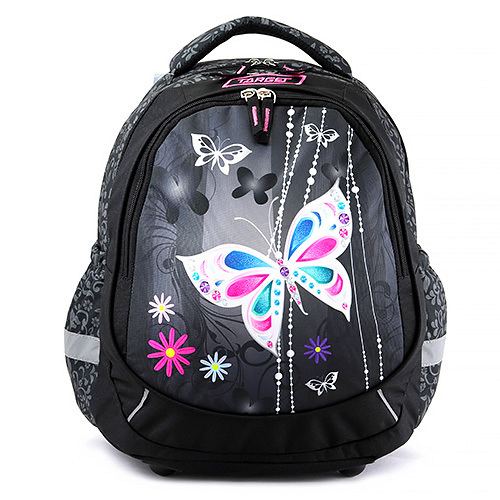 Stylový batoh v designu značky Target bude krásným a praktickým doplňkem všech starších školaček či studentek. Tento kvalitně zpracovaný batoh disponuje jednokomorovým vnitřním prostorem a přední kapsou na svačinu a jiné drobnější věci. Po obou stranách batohu kapsy opatřené gumičkou. Anatomicky tvarovaná záda batohu jsou příjemně polstrovaná pro pohodlné a dlouhodobé nošení. Funkčně tvarované ramenní popruhy v ideální šíři jsou též polstrované a výškově nastavitelné. V horní části měkké poutko na zavěšení či krátkodobé přenášení. Tento parádní batoh lze využít i pro volnočasové aktivity či na běžné nošení do města!Rozměry batohu: výška 40 cm x šíře 30 cm x hloubka 18 cm. Materiálové složení: 100% polyester.