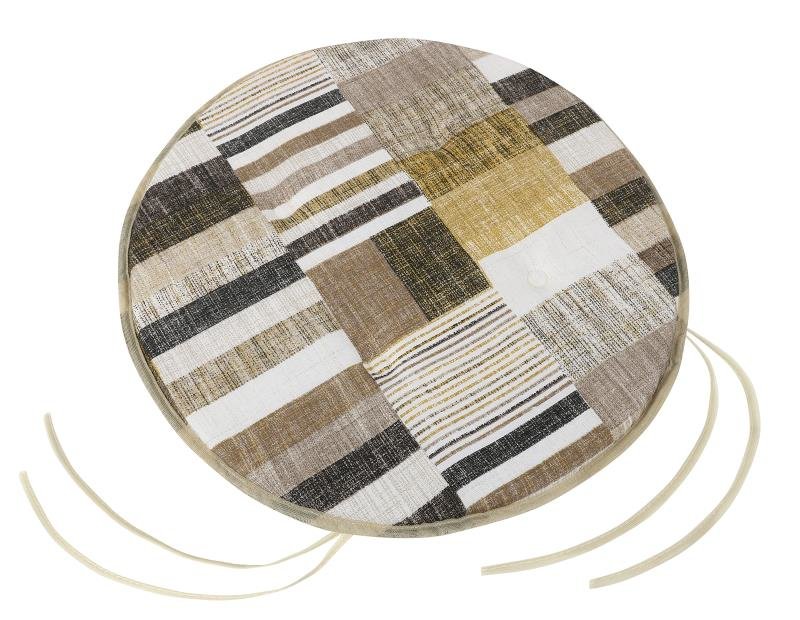 Sedák kulatý hladký se šňůrkami, uvnitř je 2 cm vysoký polyuretan, sedák je na čtyřech místech prošitý okrasným stehem proti pohybu vnitřní vyplně. Praní na 30C v automatické pračce.