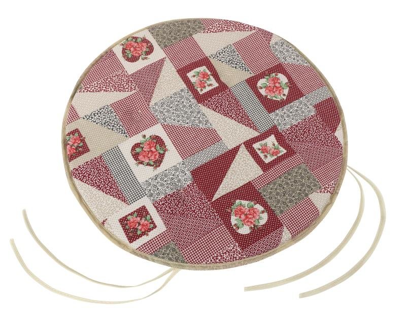 Sedák EMA kulatý hladký - patchwork bordový - průměr 40 cm, výška puru 2 cm