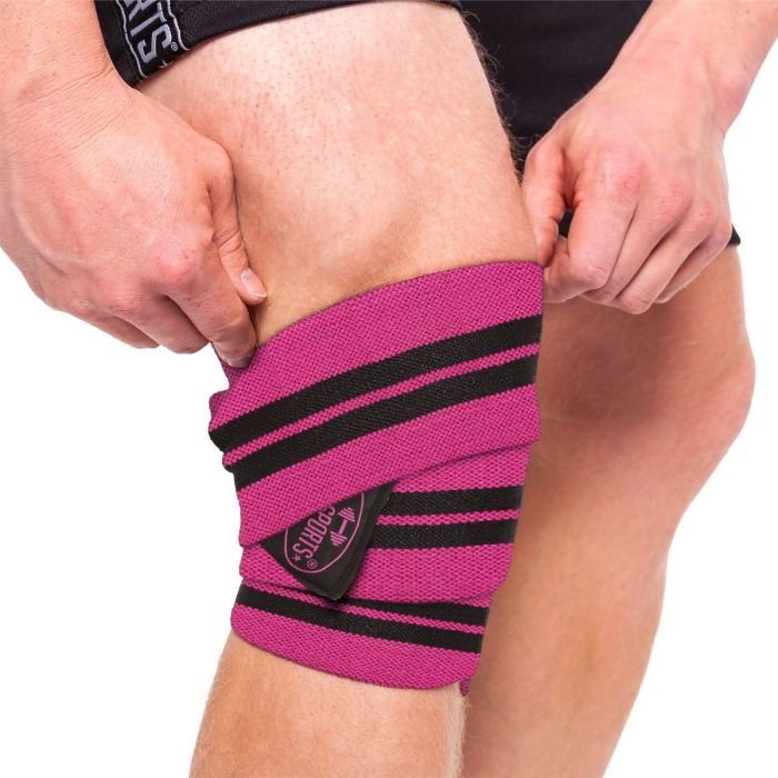 Bandáž na kolena je tréninková pomůcka, která slouží k omotání a zpevnění kolenního kloubu. Má délku 150 cm a šířku 8 cm, díky čemuž skvěle obepne koleno a poskytne mu oporu při cvičení. Je vyrobena z odolného elastického materiálu, který se dokonale přizpůsobí tvaru vaší nohy i nárokům na míru stažení. Při používání se její konce pevně zastrčí pod omotanou bandáž, což je zárukou bezpečného držení. Není na ni suchý zip, a nehrozí tak, že se při cvičení rozepne a ohrozí stabilitu kolene.