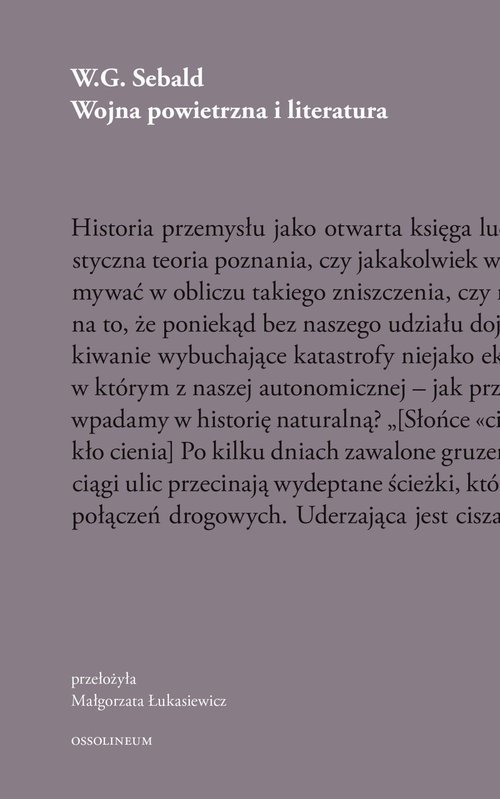 Ponad sto miast obróconych w ruinę i około sześciuset tysięcy ofiar cywilnych – taki jest bilans alianckich nalotów dywanowych z lat 1943–1945, będących jedną z najtrwalszych traum społeczeństwa niemieckiego, która została niemal zupełnie przemilczana. Wojna powietrzna i literatura jest żarliwą...