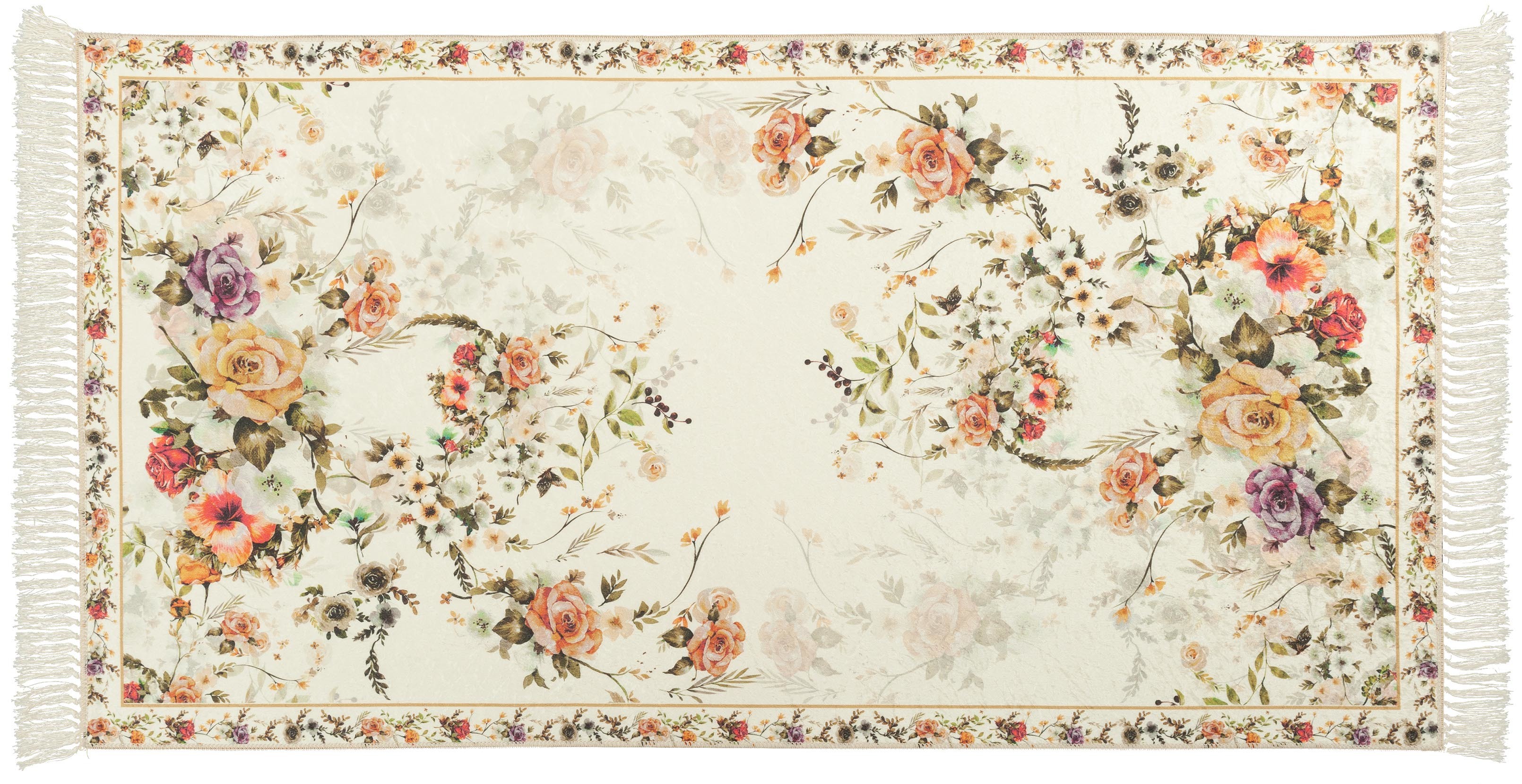 Kusový vzorovaný koberec s třásněmi SUNSHINE 80x150 cm bílé květy Multidecor