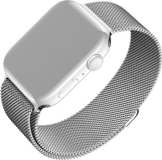 Síťovaný nerezový řemínek FIXED Mesh Strap pro Apple Watch 42/44/45mm,stříbrný. Díky provlékacímu zapínání na magnet je řemínek vhodný pro různé velikosti zápěstí. Barva oceli je nanesena galvanizací a je tak odolná vůči poškození