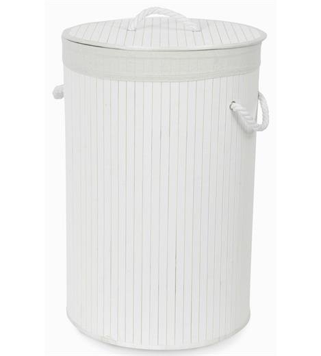 Koš na prádlo Compactor bambusový s víkem Bamboo - kulatý, bílý, 40 x v.60 cm