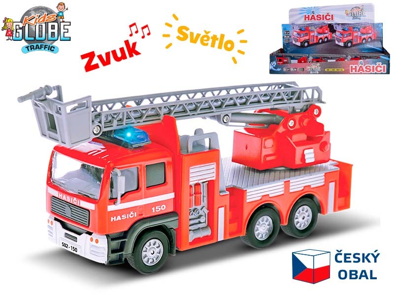 Kids Globe Traffic hasiči 14cm kov zpětný chod na baterie český design světlo a zvuk 12ks v DBX