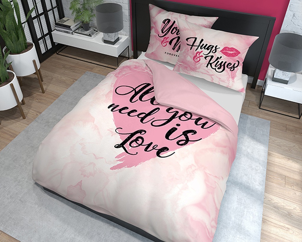 Povlečení KISSES 100% saténová bavlna 1x 200x220 cm, 2x povlak 70x80 cm francouzské povlečení MyBestHome