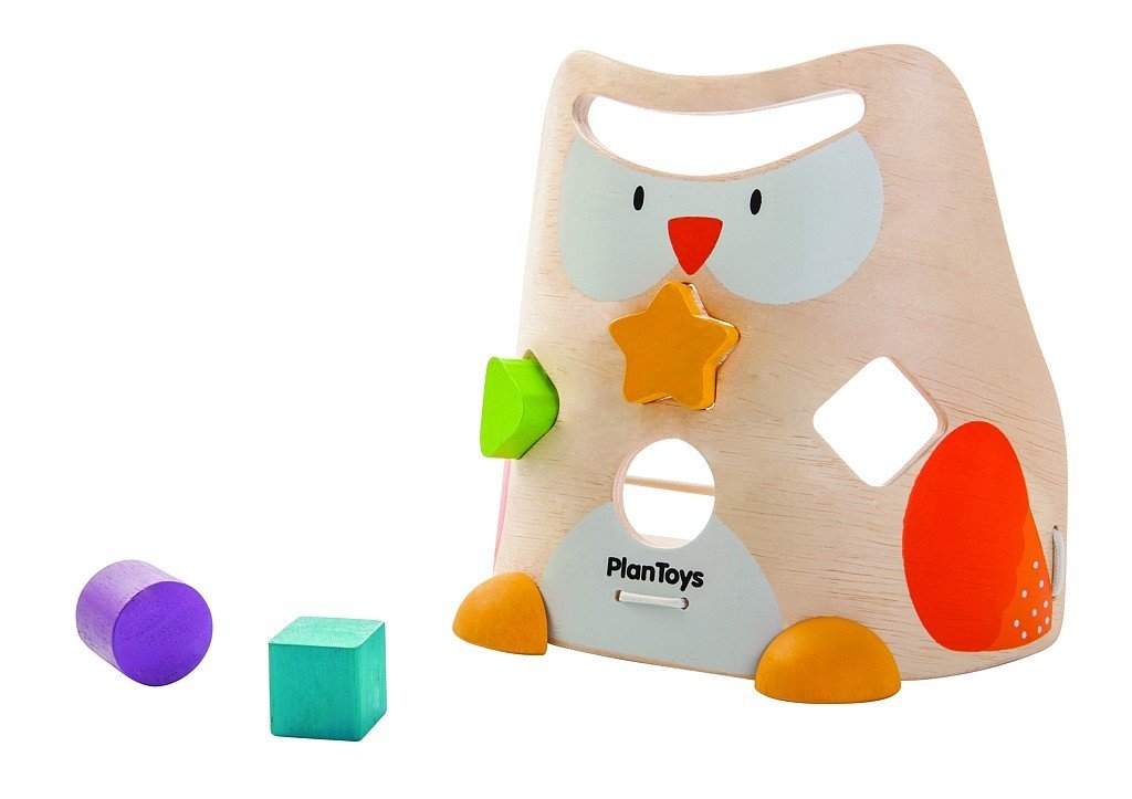 Velká zábava pro děti - třídění 4 různých tvarů do dřevěné sovy. Hra rozvíjí nejen rozpoznávání barev a tvarů, ale také zlepšování koordinace ruka - oko. Rozměry: 19,2 x 10,3 x 17,6 cm Vhodné pro děti od 1 roku. PLAN TOYS Plan Toys je již téměř 40 let úspěšně fungující firma v oboru výroby vysoce kvalitních ekologických hraček. Firma vznikla v roce 1981 na jihu Thajska a v této oblasti funguje dodnes. Ve své produkci využívá dřevo z kaučukovníků, které již neprodukují latexové mléko. Společnost toto dřevo vykupuje od farmářů, pro které již nemá žádnou hodnotu, ale rovněž dbá na to, aby byly opětovně vysazovány stromy nové. Právě použitím těchto stromů je výroba trvale udržitelná, ekologická a navíc z vysoce kvalitního materiálu. Výrobní proces je navržen tak, aby se za využití solární energie a biomasy maximálně šetřila energie a nedocházelo k žádné produkci odpadu. PlanToys používá ve své výrobě hraček lepidlo bez formaldehydů a barvy na vodní bázi, které jsou bezpečné, bez olova a jiných těžkých kovů. Pro obaly a tištěné materiály se využívá recyklovaný papír. Hračky mají certifikáty pro ekologicky šetrné, sociálně prospěšné a ekonomicky životaschopné obhospodařování lesů a ISO 9001 (pro vysokou kvalitu produktů) a 14001 (management životního prostředí). Firma získala akreditaci o sociální odpovědnosti (OHSAS 18001), což vypovídá o perfektním vztahu k zaměstnancům a vytváření bezpečného a zdravého pracovního prostředí. Firma zaměstnává mimo jiné také osoby se zdravotním postižením, pravidelně sponzoruje mnoho aktivit pro děti, jako jsou dětské kluby, hřiště, knihovny a herny, ale dokonce i spolupracuje s maminkami dětí s různým postižením a spolu s nimi vytváří hračky, které mohou těmto dětem pomoci. Hračky od PlanToys podporují hru, kreativní mysl a učí děti o světě kolem nás. O jejich úspěchu vypovídají také desítky ocenění z celého světa.