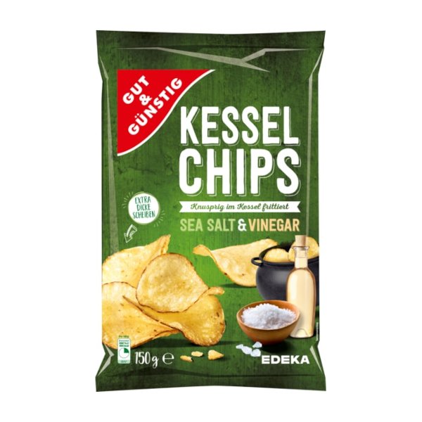 GG Kotlíkové chipsy - extra silné plátky - Mořská sůl & Ocet 150g