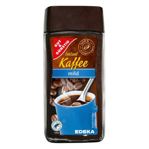 GG Instantní rozpustná káva - jemná - 200gJemný mix pečlivě vybraných druhů kávy. Jemná a vyvážená chuť kávy pro všechny, kteří upřednostňují jemné aroma šálku kávy. Certifikace Rainforest Alliance: káva z udržitelného pěstování.Cca 112 šálků kávy. číst celé