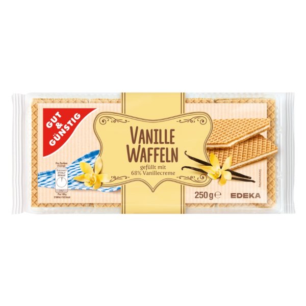 Ideální ke kávě, čaji nebo jako ozdoba do zmrzlinového poháru. Jedná se o bohatě plněné sušenky vanilkovým krémem, který je mezi dvěma vaflemi.