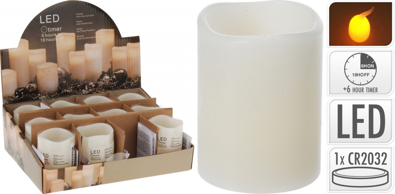 LED svíčka je věrnou imitací pravé svíčky. Umí navodit příjemnou atmosféru na dušičky, Vánoce, ale i v létě na terase. Součástí svíčky je časovač (6 hodin svítí, 8 hodin nesvítí). S blikajícím plamínkem.
