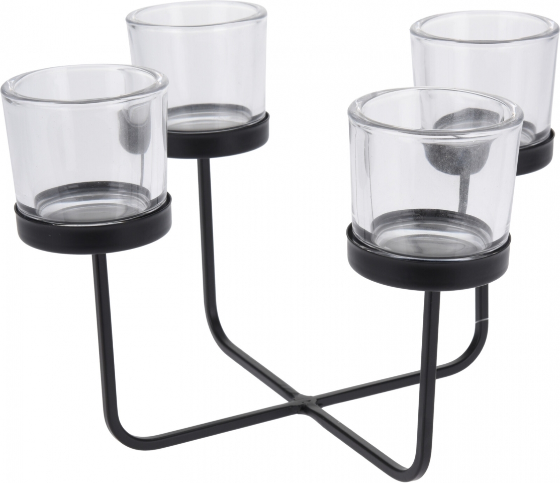Kovový svícen se skleněnými kalíšky na 4 čajové svíčky.