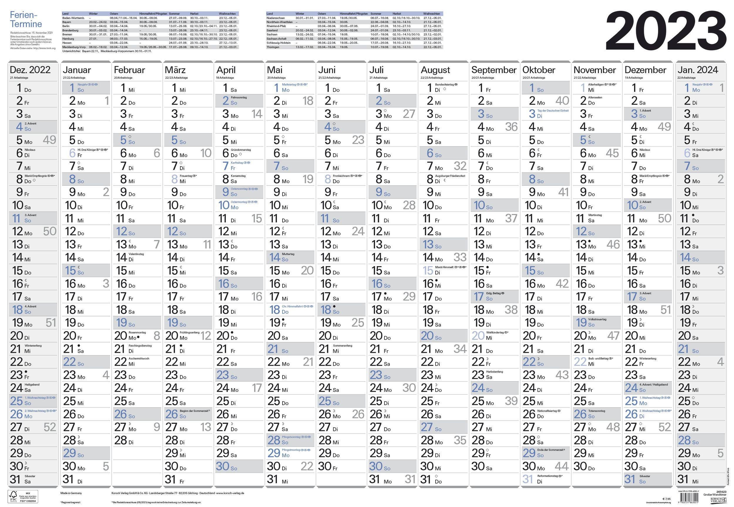 · Korsch Verlag GmbH · 2022 · kalendář · 1 stran