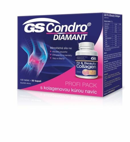 Mimořádná síla a účinnost GS Condro® DIAMANT na klouby, doplněná o kolagenovou kúru GS Fit & Beauty Collagen na 50 dní. GS Condro® DIAMANT obsahuje nejvyšší množství glukosamin sulfátu v kvalitě Clini-Q®. Je obohaceno o revoluční DIAMANT FORTESCIN®, kombinaci aescinu a vitaminu C, který podporuje tvorbu kolagenu pro správnou funkci kloubních chrupavek.