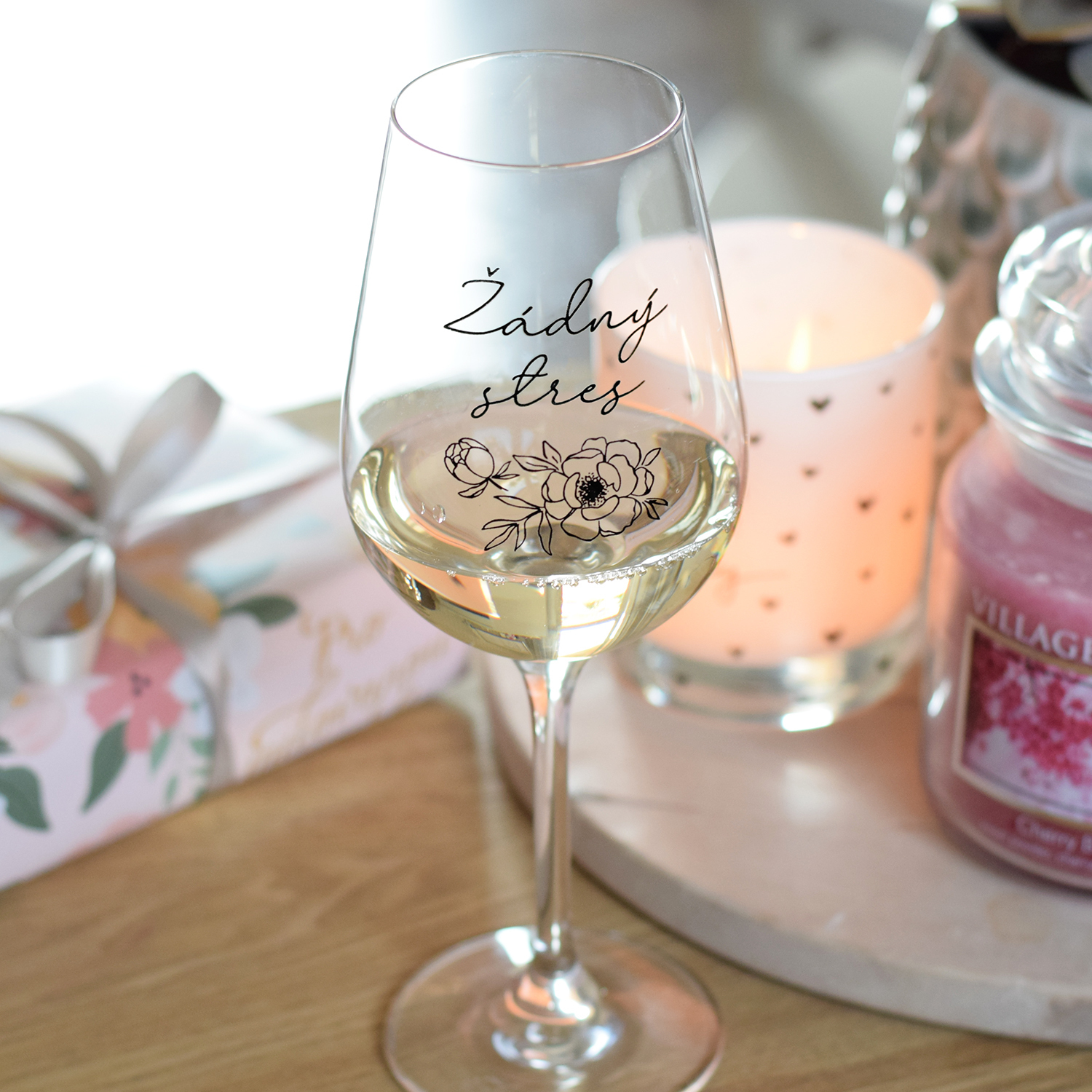 Sklenice na víno - Žádný stres (Pivoňka)