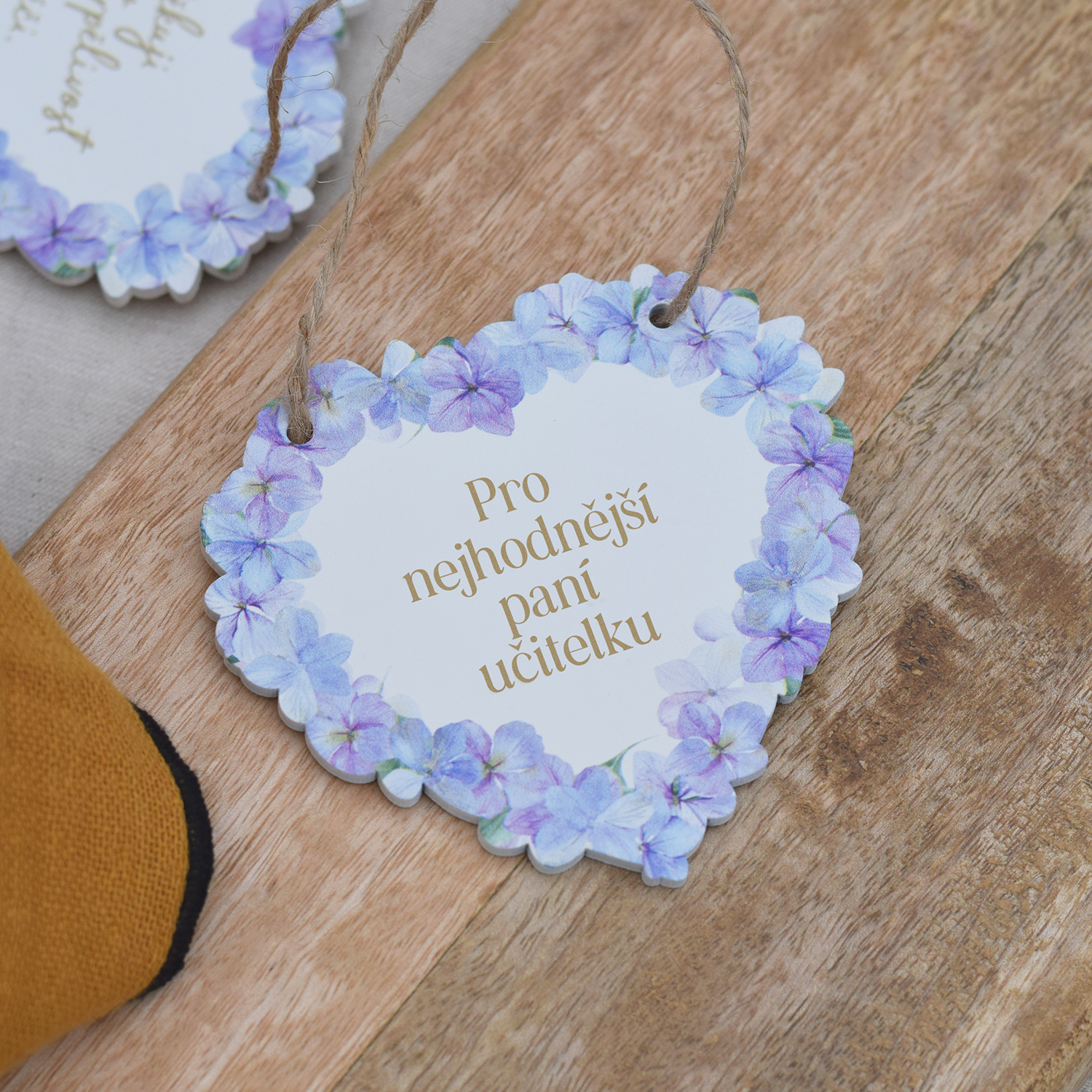 Dřevěné srdíčko zdobené českými texty a květy hortenzie je milým dárkem, kterým nikdy neurazíte. Vybírejte z několika variant z této kolekce.