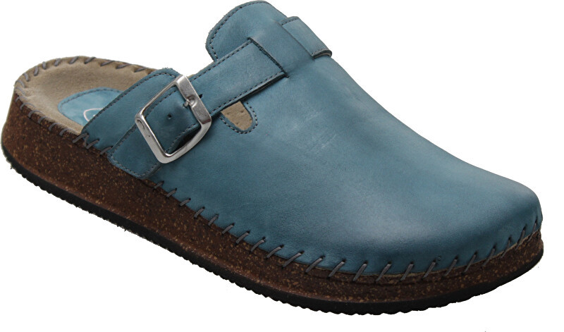 Dámský pohodlný pantofel s plnou špicí.Výrazně měkčená, pohodlná stélka z usně.Svrchní materiál - useň.Regulace šíře - přezka.Barva - tyrkysová.