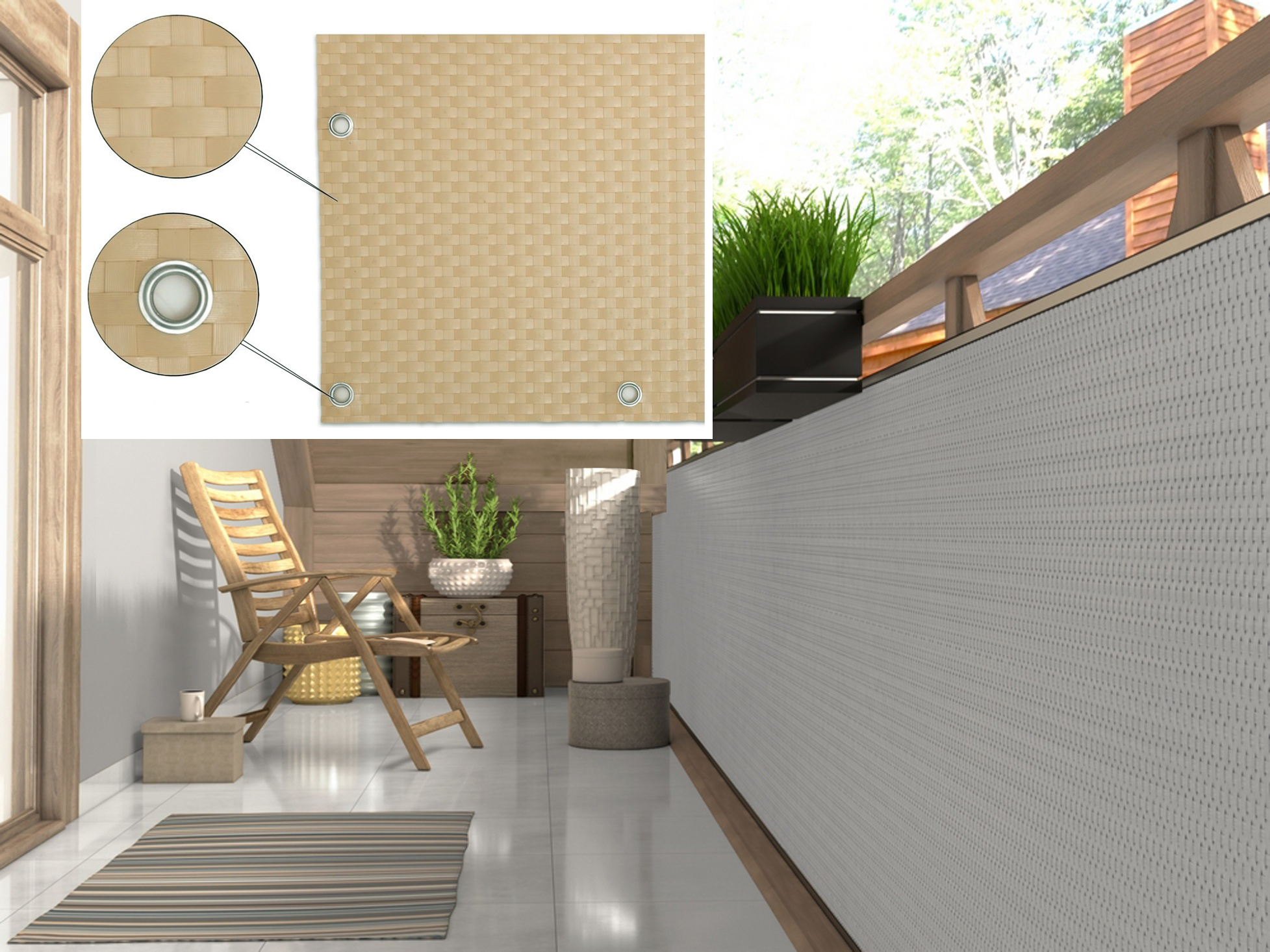 Balkonová ratanová zástěna s očky MALMO, béžová, výška 100 cm šířka 300 cm MyBestHome