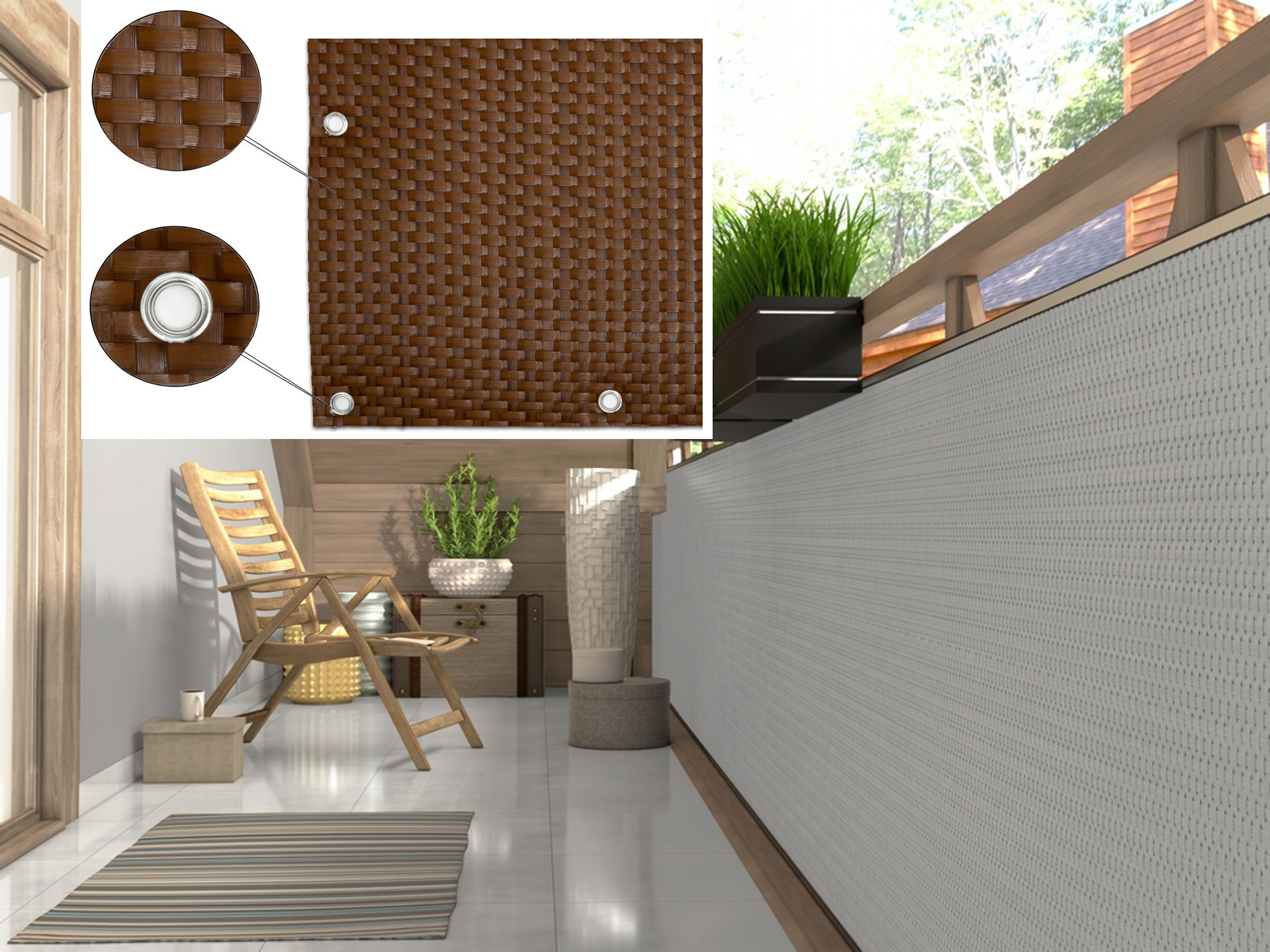 Krycí balkonová zástěna z umělého ratanu je ideálním doplňkem Vašeho balkonu. Je praktickou ochranou před větrem, je odolná vůči povětrnostním vlivům a UV záření. Pokud toužíte po soukromí před nežádoucími pohledy zvědavých sousedů je zástěna Vaše ideální volba. Balkonová zástěna je nabízena v různých rozměrech. Je vyrobena z pevného materiálu se 100 % stíněním, je vodotěsná a velmi odolná. Doporučujeme na balkon, zahradu nebo terasu. 1300 g/m2. Možnost zkrátit na libovolnou délku, materiál se netřepí a netrhá.