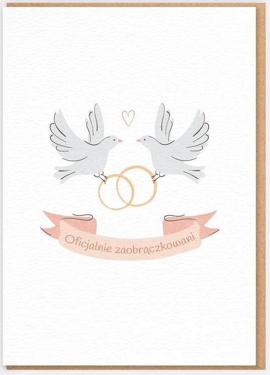 Z myślą o gołębiach miłości, które wkraczają w nowy etap życia, stworzyliśmy kartkę OFICJALNIE ZAOBRĄCZKOWANI. Polecamy ją jako uniwersalny dodatek do prezentu dla nowożeńców.