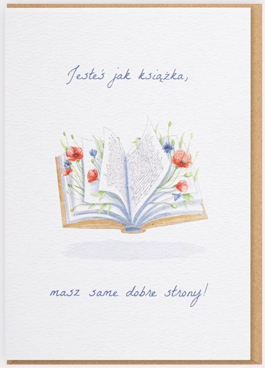 JESTEŚ JAK KSIĄŻKA - MASZ SAME DOBRE STRONY! to uniwersalna kartka okolicznościowa oraz dodatek do prezentu dla każdego miłośnika literatury i kwiatów polskich (nie tylko tych Tuwima). Czyż istnieje piękniejsze połączenie niż maki i chabry? Śmiemy wątpić!