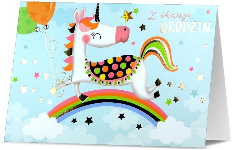 Karnet okolicznościowy B6 z kopertą.Kolorowy i wesoły karnet z przestrzenną aplikacją i miejscem na życzenia w środku. číst celé